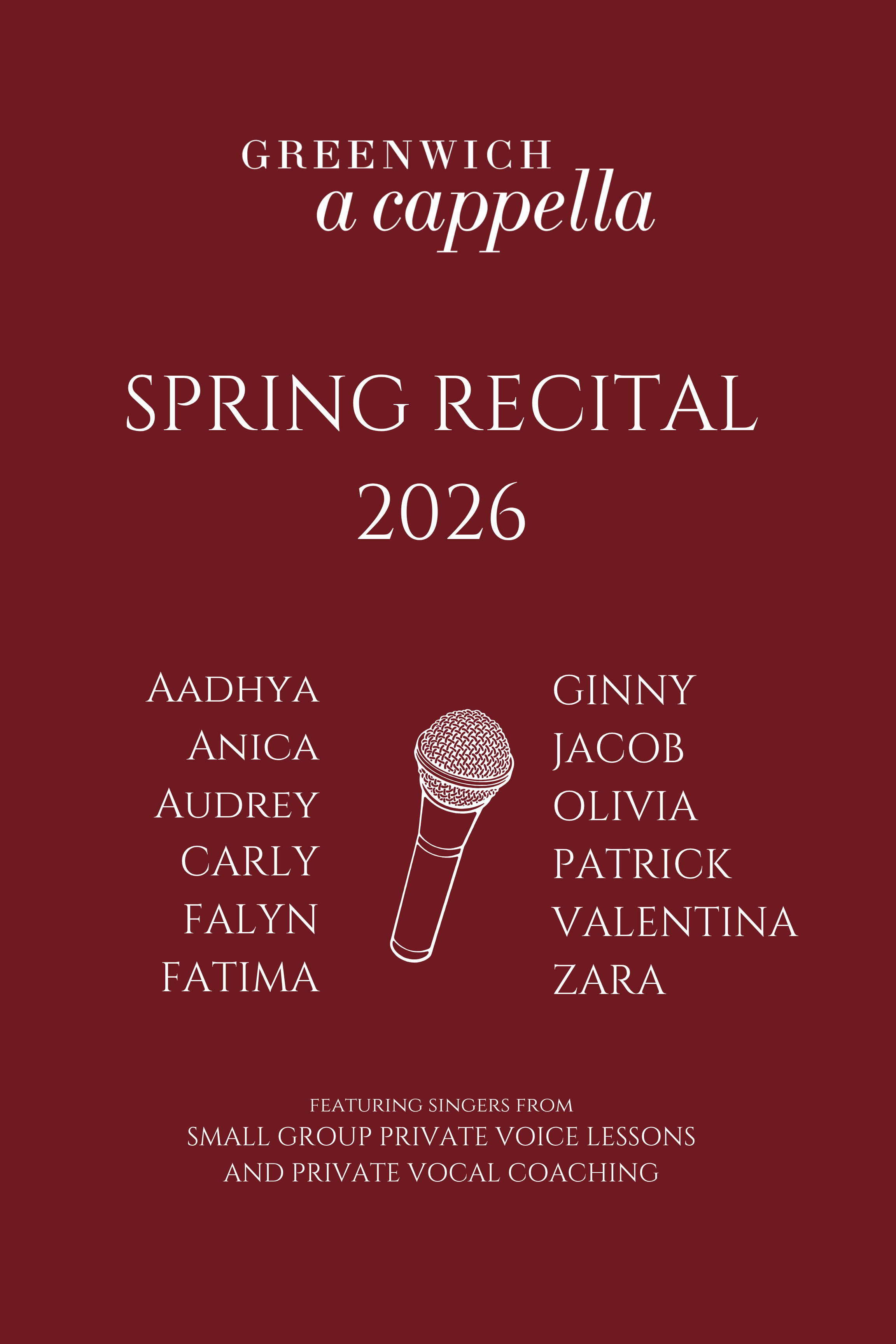 Every singer gets a chance to perform on stage. Family and friends get to cheer on their singer at our end-of-semester showcase. As singers advance through the program, they get even more performance opportunities.
